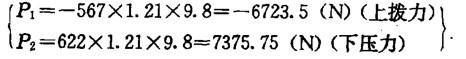 问题 杆塔挂线点承受的电线垂直荷载为其前后侧电线最低点间电线的重量(自重或自重加冰重)。 P=P0(l1v+l2v)=P0lv 式中P0——每米线重,kg*f; lv——垂直档距,m。 某耐张塔l1v=567m,l2v=622m LGJ300/50导线,自重P0=1.21kg*f/m,每相导线前后侧挂点的垂直荷载为()。