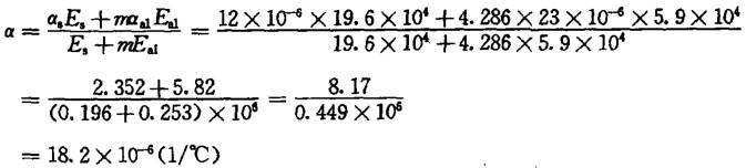问题 由于架空线路的档距很大,当气象条件变化时,导线的弹性伸长和温度膨胀对应力和弧垂影响很大,如最髙气温时,弧垂最大,即系温度膨胀所致。覆冰时,弧垂剧增,即系应力增加,弹性伸长所致。 钢芯铝绞线系两种材质绞合而成,其伸长应相等。若不考虑扭绞的影响,其综合弹性系数E和线性膨胀系数α,除与铝、钢的α、E有关外,还与铝钢截面比有关。 以铝线30股,钢芯7股,股线直径相同的结构(如LGJ—185/45,LGJ-210/50, 综合线膨胀系数α(l/℃)为()。