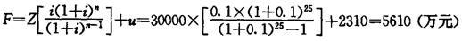 问题 某500kV输变电工程建设主要数据假定如下: 工程总投资(Z):30000万元(其中线路、变电所各50%) 工程经济使用年限(n):25年 检修、维护费率:线路2.2%、变电所4.2% 电力工业投资回收率(i):10% 方案年电能损失费用(u2):1350万元 注:因本工程建设时间短,投资和年运行费用不霈要折算。 方案年费用(F)是()。