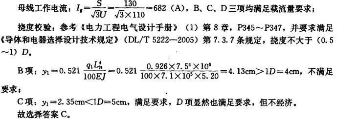 问题 某钢铁公司自备电站建有2X60MW热电联产机组,分别以发电机一变压器组单元接线接入厂内110kV配电装置,起备电源从厂内11OkV引接,出线间隔6个。 110kV配电装置采用了铝管母线,母线穿越功率130MVA,母线计算跨距7.5m,忽略跨中集中荷载,每两跨设一个伸缩接头。宜选用()铝管母线。