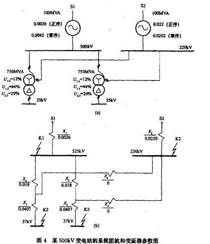某500kV变电站已知系统阻抗和变压器参数如图4所示,站址位于一块荒地上,围墙外面有水塘。 若变电站接地网的接地电阻实测值为0.5Ω,接地电阻值未...