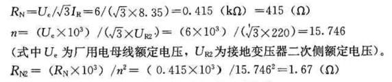 解析 解答过程:电阻值按单相接地电容选取,按公式:R N2=(RNX103)n2 式中RN为系统中心点等效电阻,RN2为接入接地变压器二次侧的电阻值,n为接地变压器的变比。
