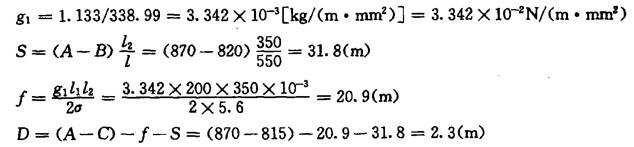 某220kV线路,双分裂LGJ—300/40导线,悬垂绝缘子串长为3.Om,计算弧垂用,k值取7.75X10-5l/m,使用的铁塔如图10所示。 ...