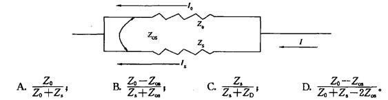 问题 某线路采用双地线,导线采用双分裂LGJ—400/35钢芯铝绞线,为解决系统通信问题,其中一根为OPGW(自阻抗为Z0),另一根为普通铝包钢线(自阻抗为Zs)。两根地线之间的互阻抗为Zos。 请计算铝包钢线的分流表达式()。
