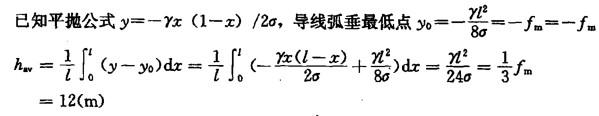 问题 某线路采用双地线,导线采用双分裂LGJ—400/35钢芯铝绞线,为解决系统通信问题,其中一根为OPGW(自阻抗为Z0),另一根为普通铝包钢线(自阻抗为Zs)。两根地线之间的互阻抗为Zos。 导线的平均高度是指档内各点对电线最低点高度的平均值,一般对电线的悬挂曲线方程沿档距进行积分求得,已知导线弧垂fm=36m,导线挂点两侧等高,请按平抛公式y=-γx(1-x)计算导线平均髙为()。