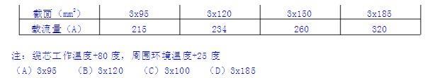 选项 已知每一回35kV集电线路上接有9台2000kVA的箱式变压器,其集电线路短路时的热效应为1067kA2S铜芯电缆的热稳定系数为115,电缆在土壤中敷设时的综合校正系数为1,请判断下列哪种规格的电缆既满足载流量又满足热稳定要求? 三芯交联聚乙烯绝缘铜芯电缆在空气中(25度)长期允许载流量(A)