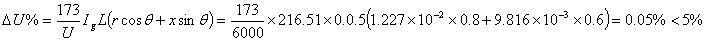 解析 根据《电力工程电缆设计规范 GB50217-2007》附录E,式E.1.1-1:,由题意: ,得。 若选用YJV-6/6 3*150mm2, 根据《电力工程电气设计手册﹒电气一次部分》P940 (三)按电压损失校验: 应校验电动机回路的电缆电压损失: 式中:U=6300V,Ig由《火力发电厂厂用电设计技术规定 DL/T5153-2002》附录M (M3)式求得: L=50m,,,, (见DL/T5044-1995 附录D D.1) 又由《电力工程电气设计手册﹒电气一次部分》第四章附表4-14 x/r=0.8 可得x=0.8r,,综上,得 满足要求。