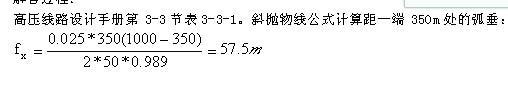 选项 请用斜抛物线公式计算距一端350m处的弧垂是下列哪项? (A)59.6m(B)58.7m(C)57.5m(D)55.6m