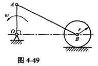 问题 图4-49所示机构中,曲柄OA以匀角速度绕O轴转动,滚轮B沿水平面作纯滚动,如图4-48所示。己知OA=l, AB=2l,滚轮半径为r。在图示位置时,OA铅直,滚轮B的角速度为( )。