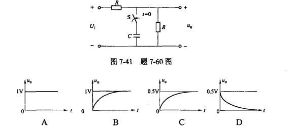 问题 如图7-41所示电路中,R=1kΩ,C=1μF,Ui=1V,电容无初始储能,如果开关S在t=0时刻闭合,则给出输出电压波形的是()。