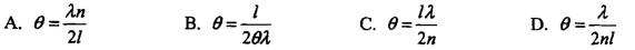 问题 有一玻璃劈尖,置于空气中,劈尖角为θ用波长为λ的单色光垂直照射时,测得相邻明纹的间距为ι,若玻璃的折射率为n,则θ、λ、ι与n之间的关系为( )。