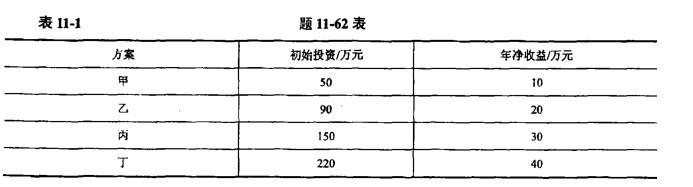 有四个互斥方案,寿命期均为10年,基准收益率为8%, (P/A, 8%, 10) =6.710 1, 各方案的初始投资和年净收益如表11-1所示,则最优方...