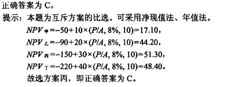 问题 有四个互斥方案,寿命期均为10年,基准收益率为8%, (P/A, 8%, 10) =6.710 1, 各方案的初始投资和年净收益如表11-1所示,则最优方案为( )。