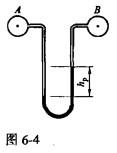 问题 如图6-4所示,用U形水银压差计测量水管A、B两点的压强差,水银面高hp=10cm, A、B两点压强差为( )kPa。