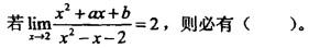 解析 正确答案是D。 提示:当x→2,分母极限为零,分子也必须为零,故有4 + 2a + b = 0;利用洛必达法则, 所以a=2,代入4 + 2a + b= 0有b=-8。