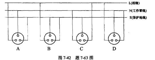问题 中性点接地的三相五线制电路中,所有单相电气设备电源插座的正确接线是图7-42中的()。