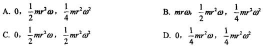 问题 图4-67示均质圆轮,质量为m,半径为r,在铅垂图面内绕通过圆轮中心O的水平轴以匀角速度ω转动。则系统动量、对中心O的动量矩、动能的大小为( )。