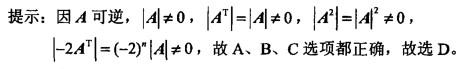 选项 A. AT可逆 B.A2可逆 C. -2A可逆 D.A+E可逆