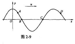 横波以波速u沿x轴正向传播,t时刻波形曲线如图2-9所示,则该时刻( )。A. A点速度小于零B. B点静止不动C. C点向上运动D. D...