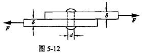 问题 已知铆钉的许可切应力为[τ],许可挤压应力为[σbs],钢板的厚度为δ,则图5-12 所示铆钉直径d与钢板厚度δ的关系是()。