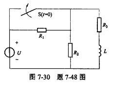 问题 电路如图7-30所示,开关S闭合前电路已达稳态,t=0时S闭合,电路的时间常数τ等于()。