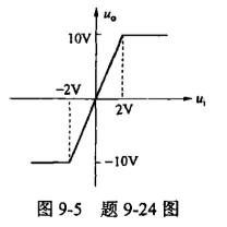 问题 某模拟信号放大器输入与输出之间的关系如图9-5所示,那么,能够经该放大器得到5倍放大的输入信号u(t)最大值一定( )。