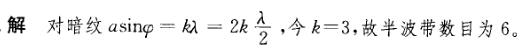问题 在单缝夫琅禾费衍射实验中,屏上第三级暗纹对应的单缝处波面可分成的半波带的数目为: