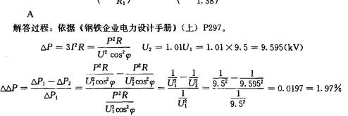 问题 某标称电压为10.5kV配电线路实际电压为9. 5kV,为了减少线路功率损耗,计划 将实际电压提高。在输送功率和负载功率因数不变的条件下,提高实际电压1%,功率损耗 降低( )。