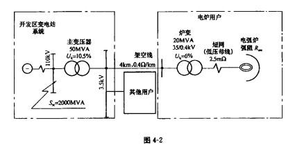 问题 今有一台炼钢电弧炉,拟接入开发区变电站,系统参数如图4-2所示。