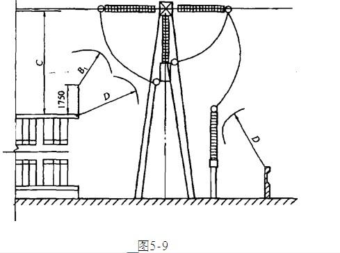 图5-8、图5-9为中性点不接地的1lOkV屋外配电装置,安装地的海拔髙度不超过 1000m,请按下列要求分别回答问题:由于布置上的原因,变电...