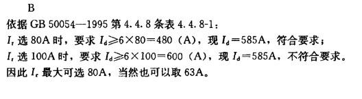 若电动机端子处的接地故障电流IA为585A,熔体额定电流最大可选()。 A. 63A; B 80A, C 100A; D. 125A。