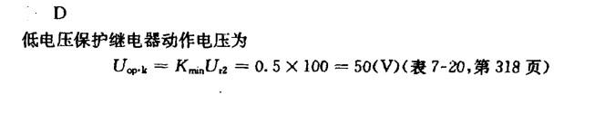 已知同第9题。低电压保护继电器动作电压为( )。A. 20V,B. 30V;C. 40V;D. 50V。