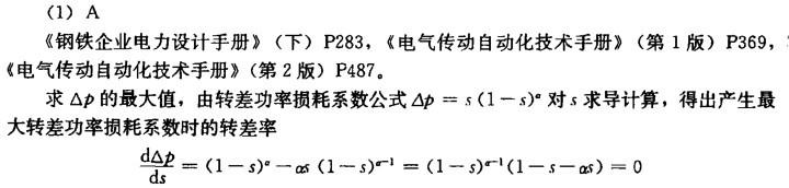 问题 产生最大转差功率损耗系数时的转差率S1与系数α的关系表达式为()。