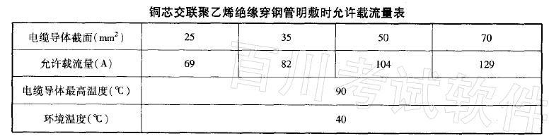 问题 题1~5:某车间负荷采用低压三相电源线路供电,线路长度L = 50m ,允许电压降5%,保护装置0.4s内可切除短路故障,线路发生最大的短路电源Ik= 6.8 kA,线路采用铜芯交联聚乙烯绝缘电缆穿钢管明敷,环境温度4,电源导体最高温度9 0尤,电缆经济电流密度2.0A/ mm2,电缆热稳定系数c=137,电压损失百分数0.50% /(kW·km)。车间设备功率数值统计见下表,有功功率同时系数取0.8,无功功率同时系数取0.93。请回答下列问题。 若假定Pe=21.5kW。计算选择车间电缆导体截面不应小于下列哪一项数值? (铜芯交联聚乙烯电缆穿钢管明敷时允许载流量见下表) ( )