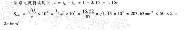 解析 《工业与民用配电设计手册》(第三版)P207有关校验导体热稳定短路电流持续 时间的规定及P211式(5-24)、式(5-26)。