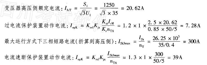 问题 请依据下述条件,分析回答下列问题。 下图是某企业的供电系统图,假定最大运行方式下D点三相短路电流= 26. 25kA,请通过计算判断企业变压器35kV侧保护继电器过流整定值和速断整定值最接近下列哪一组数字?(电流互感器变比50/5。过流保护采用DL型继电器,接于相电流。低压回路有自启动电动机,过负荷系数取2.5) ( ) (A)过流整定值7.88A,速断整定值39A (B)过流整定值12.61A,速断整定值62.35A (C)过流整定值7.28A,速断整定值34.2A (D)过流整定值7.28A,速断整定值39A