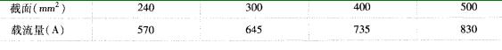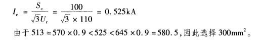 问题 某县在城网改造中需将环城的18km 110kV架空导线换为单芯交联聚氯乙烯铝芯电缆,采用隧道内敷设。架空线输送容量为100MV.A,短路电流为31.5kA,短路电流持续时间为0.2s,单芯交联聚氯乙烯铝芯电缆在空气中一字形敷设时的载流量及电缆的其他参数见下表。 巳知高压电缆敷设时综合修正系数为0. 9,按电缆允许载流量选择该工程电缆截面应为下列何值? ( ) (A) 240mm2(B)300mm2 (C)400mm2 (D) 500mm2