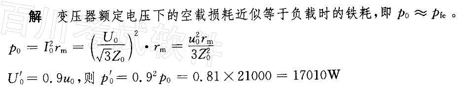 问题 变压器的额定容量SN = 320kVA,额定运行时空载损耗p0 = 21kW,如果电源电压下降10%,变压器的空载损耗将为()。