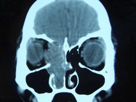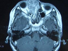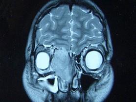 女,16岁,鼻塞、流涕一年余,失去嗅觉,影像检查如图所示,最可能的诊断是 ( )A、小唾液腺癌B、嗅神经母细胞瘤C、筛窦癌D、...