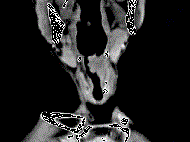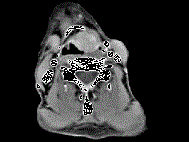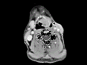 男,53岁,咽部不适半年余,近2个月感咽部疼痛,声嘶,CT如图所示,应诊断为 ( ) A、喉肉芽肿B、喉部纤维瘤C、喉癌D、梨状窝癌...
