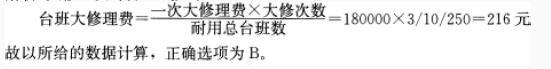 问题 某施工机械预算价格为80万元,折旧年限为10年,年平均工作250个台班, 一次大修理费为18万元,大修次数为3次,则该台机械台班大修理费为( )元。