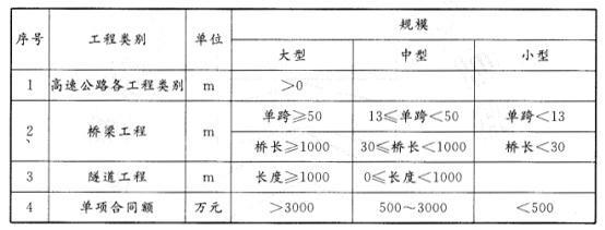 选项 A、桥梁工程,30m<桥长<1000m B、隧道工程,0m<长度<1000m C、单项合同额,>3000万元 D、单项合同额,500~3000万元 E、桥梁工程,50m<单跨<100m