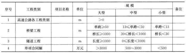 选项 A、桥梁工程,30m≤桥长<1000m B、隧道工程,0m≤长度<1000m C、单项合同额,>3000万元 D、单项合同额,500~3000万元 E、桥梁工程,13m≤单跨<50m