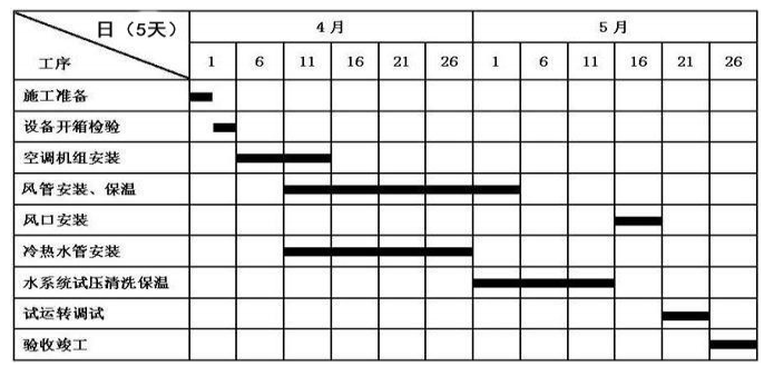 问题 【背景资料】 A 安装公司承包某大楼的空调设备的智能监控系统安装工程。主要监控设备有现场控制器 DDC、电动调节阀、电动风阀驱动器(驱动风)和温度传感器〈水管型、风管型〉等。大楼的空调工程是 B 安装公司承包施工,合同约定:全部监控设备由 A 公司采购,但其中电动调节阀和电动风阀驱动器由 B 安装公司安装,空调系统的调试由两家公司共同负责。A 安装公司项目部进场后,依据 B 安装公司提供的空调工程施工组织设计、空调工程施工方案、变风量空调机组监控设计方案和空调工程施工进度计划(见下图)等资料,编制空调监控设备的施工方案、监控设备施工,进度计划和监控设备材料采购计划。因施工场地狭小,为减少仓储保管,A 安装公司项目部在制定的监控设备材料采购计划时,考虑集中采购与分批到货的采购计划,要求设备的采购计划涵盖空调工程施工的全过程,使设备材料采购计划与施工进度合理搭接,处理好它们间的接口管理关系.A 安装公司在监控工程实施过程中,积极与 B 安装公司协调,及时调整偏差,使监控工程的施工符合空调工程的施工进度计划,A 安装公司和 B 安装公司共同实施对通风空调系统的联动试运行,使空调监控工程工程按合同要求完工。 【问题】 1.总工期为多少天?电动调节阀最迟的到货时间是哪天?指出温度传感器(风管型)可以安装的起止时间。 2.