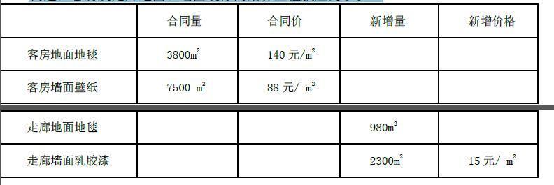 解析 1、客房: 地面及墙面装修结算工程款为: 3800 ㎡ *140 元/㎡+7500 ㎡*88 元/㎡=1192000 元 2、走廊: 地面地毯按原单价计算的工程量为:3800 ㎡*15%=570 ㎡ 走廊地面装修结算工程款为:570 ㎡*140 元/㎡+(980 ㎡-570 ㎡)*140 元/㎡*90%=131460 元 走廊墙面装修结算工程款为:2300 ㎡*15 元/㎡=34500 元 3、客房及走廊墙面、地面装修结算工程为: 1192000+131460+34500=1357960 元