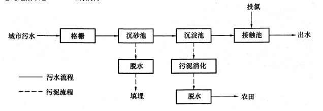选项 A、污水→格栅→沉砂池→二沉池→生物处理池→出水 B、污水→格栅→沉砂池→初沉池→生物处理池→二沉池→出水 C、污水→格栅→混凝→沉淀→过滤→消毒 D、污水→格栅→曝气氧化→混凝沉淀→消毒→出水