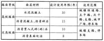 解析 城镇道路路面等级和面层材料分类见下表: