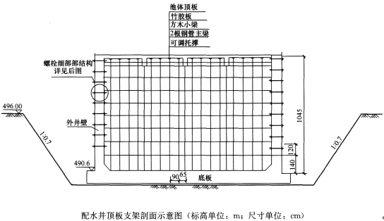 解析 1.【参考答案】 缺少的降水设施:(1)排水明沟;(2)集水井;(3)排水泵。 顶板支架缺少的重要杆件:(1)扫地杆;(2)水平剪刀撑;(3)竖向剪刀撑。 【考点解析】本小题为分析判断题,涉及两个考点:(1)明沟、集水井排水系统的布置;(2)加强型满堂支撑架的构造。背景资料给我们的信息是配水井基坑边坡坡度1:0.7(基坑开挖不受地下水影响),采用厚度6~10cm的细石混凝土护面。配水井顶板现浇施工采用扣件式钢管支架(支架剖面示意图见案例背景资料)。方案报公司审批时,主管部门认为基坑缺少降、排水设施,顶板支架缺少重要杆件,要求修改补充。 从上述内容可见: (1)该配水井基坑土质好,采用敞口放坡基坑形式修建,基坑开挖不受地下水影响,因此基坑周围地面应设排水沟,避免雨水、渗水等流入坑内,基坑也应设置必要的排水设施,保证开挖时及时排出雨水;同时,应对坡顶、坡面、坡脚采取降排水措施。对于这种基坑较适宜的排水方案是明沟、集水井排水。明沟、集水井排水是在基坑的两侧或四周设置排水明沟,在基坑四角设置集水井,使基坑渗出的地下水及雨水通过排水明沟汇集于集水井内,然后用水泵将其排出基坑外。排水明沟宜布置在拟建建筑基础边0.4m以外,沟边缘离开边坡坡脚应不小于0.3m。排水明沟的底面应比挖土面低0.3~0.4m。集水井底面应比沟底面低0.5m以上,并随基坑的挖深而加深,以保持水流畅通。明沟、集水井排水,视水量多少连续或间断抽水,直至基础施工完毕、回填土为止。 (2)配水井顶板现浇施工采用扣件式钢管支架,按《建筑施工扣件式钢管脚手架安全技术规范》JGJ 130—2011第2.1.6条定义,满堂扣件式钢管支撑架:在纵、横方向,由不少于三排立杆并与水平杆、水平剪刀撑、竖向剪刀撑、扣件等构成脚手架。该架体顶部钢结构安装等(同类工程)施工荷载通过可调托撑轴心传力给立杆,顶部立杆呈轴心受压状态,简称满堂支撑架。从背景资料的剖面示意图与上述定义比较可以看出,该支架属于满堂扣件式钢管支撑架,同时可以得知该图中缺少水平剪刀撑、竖向剪刀撑和扫地杆,因为图中最底层的水平杆离地尺寸为140cm,而按《建筑施工扣件式钢管脚手架安全技术规范》JGJ 130—2011规定,扫地杆的离地尺寸最大为20cm;况且,从图中可知,该满堂支撑架的步距为120cm,与图中最底层的水平杆离地尺寸140cm的差值正好为20cm。 2.【参考答案】 A:止水环;B:膨胀水泥。 采用穿墙螺栓的作用:平衡浇筑混凝土对模板的侧压力,防止模板变形和位移。 【考点解析】本小题是道简答题,用于考察考生的现浇混凝土水池模板支架施工实践知识。现浇混凝土水池模板、支架施工技术要点如下: (1)模板及其支架应满足浇筑混凝土时的承载能力、刚度和稳定性要求,且应安装牢固。 (2)各部位的模板安装位置正确、拼缝紧密不漏浆;对拉螺栓、垫块等安装稳固;模板上的预埋件、预留孔洞不得遗漏,且安装牢固;在安装池壁的最下一层模板时,应在适当位置预留清扫杂物用的窗口。在浇筑混凝土前,应将模板内部清扫干净,经检验合格后,再将窗口封闭。 (3)采用穿墙螺栓来平衡混凝土浇筑对模板产生的侧压力时,应选用两端能拆卸的螺栓或在拆模板时可拔出的螺栓,并应符合下列规定: 1)两端能拆卸的螺栓中部宜加焊止水环,且止水环不宜采用圆形。 2)螺栓拆卸后混凝土壁面应留有40~50mm深的锥形槽。 3)在池壁形成的螺栓锥形槽内,应采用无收缩、易密实、具有足够强度、与池壁混凝土颜色一致或接近的材料封堵,封堵完毕的穿墙螺栓孔不得有收缩裂缝和湿渍。 (4)池壁模板施工时,应设置确保墙体顺直和防止浇筑混凝土时模板倾覆的装置。 (5)固定在模板上的预埋管、预埋件的安装必须牢固,位置准确。安装前应清除铁锈和油污,安装后应作标志。 (6)池壁与顶板连续施工时,池壁内模立柱不得同时作为顶板模板立柱。顶板支架的斜杆或横向连杆不得与池壁模板的杆件相连接。池壁模板可先安装一侧,绑完钢筋后,分层安装另一侧模板,或采用一次安装到顶而分层预留操作窗口的施工方法。工程实践证明,穿墙螺栓处是现浇混凝土水池的渗漏点之一,需要采取有效的防渗措施。本案例中采取的加止水环和两端用密封填料和膨胀水泥堵漏的做法是有效措施之一。 3.【参考答案】 原因为:第一、施工中任何人不得擅自改变设计;第二、取消细石混凝土护面容易引起基坑边坡失稳。 否则应办理设计变更手续,即向监理和建设单位提出变更要求,经设计同意,由监理签发变更通知后执行。 【考点解析】本小题是道简析题,涉及的考点有(1)基槽土方开挖及护坡技术;(2)设计变更程序。 地质条件、现场条件等允许时,通常采用敞口放坡基坑形式修建地下工程或构筑物地下部分,但保持基坑边坡的稳定是非常重要的,否则,一旦边坡坍塌,不但地基受到震动,影响承载力,而且还影响周围地下管线、地面建筑物、交通和人身安全。常用的基坑护坡措施: (1)基坑土方开挖时,应按设计要求开挖土方,不得超挖,不得在坡顶随意堆放土方、材料和设备。在整个基坑开挖和地下工程施工期间,应严密监测坡顶位移,随时分析观测数据。当边坡有失稳迹象时,应及时采取削坡、坡顶卸荷、坡脚压载或其他有效措施。 (2)放坡开挖时应及时作好坡脚、坡面的保护措施。常用的保护措施有:叠放沙包或土袋、水泥抹面、挂网