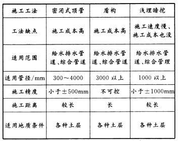 解析 不开槽施工法与适用条件(局部)详见下表。
