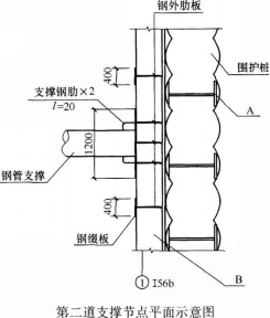 问题 背景资料: 某施工单位中标承建过街地下通道工程,周边地下管线较复杂,设计采用明挖顺作法施工。通道基坑总长80m,宽12m,开挖深度8.5m。基坑围护结构采用SMW工法桩, 基坑沿深度方向设有2道支撑,其中第一道支撑为钢筋混凝土支撑,第二道支撑为φ609*16mm钢管支撑(见下图)。基坑场地地层自上而下依次为:2.0m厚素填土、6m厚黏质粉土、8m厚砂质粉土。地下水位埋深约1.5m。在基坑内布置了5口管井降水。 项目部选用坑内小挖机与坑外长臂挖机相结合的土方开挖方案。在挖土过程中发现围护结构有两处出现渗漏现象,渗漏水为清水,项目部立即采取堵漏措施予以处理,堵漏处理造成直接经济损失20万元,工期拖延10d,项目部为此向业主提出索赔。 问题: 1.给出图4中